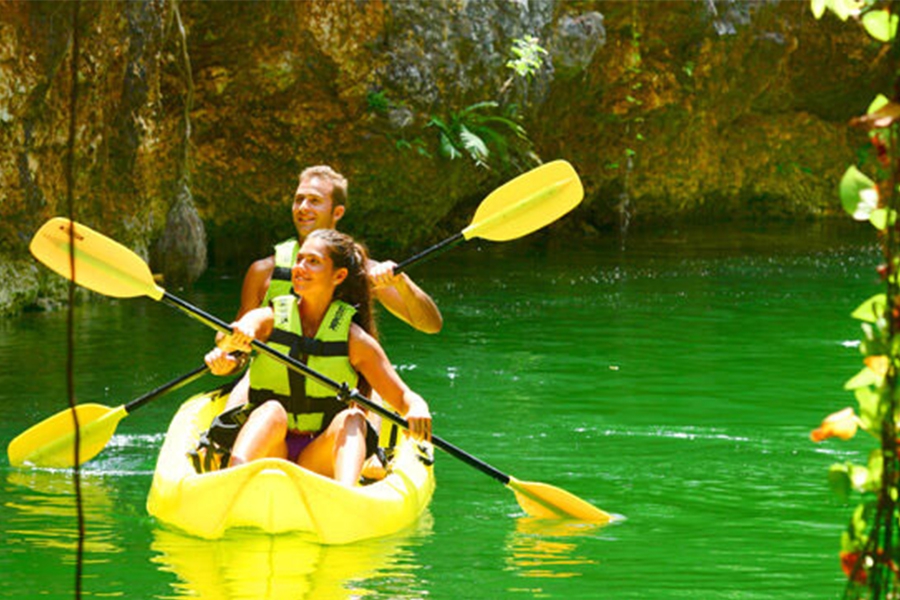 Descend by rappel in a totally safe way, and without needing to be expert, until you reach Lu'um, the Earth cenote. Fly in zip-lines to a very refreshing water setting in Iik ', the Air cenote. Swim and kayak in Ha 'the Water cenote, and cool down in the calm waters of K'áak' the Fire cenote.